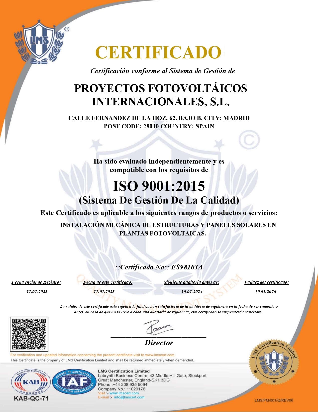Ejecutamos nuestros proyectos poniendo énfasis en el control interno y la mejora continua de nuestros procesos, para así poder ofrecer un servicio excepcional en el sector. La calidad en nuestros trabajos está avalada por las siguientes certificaciones: